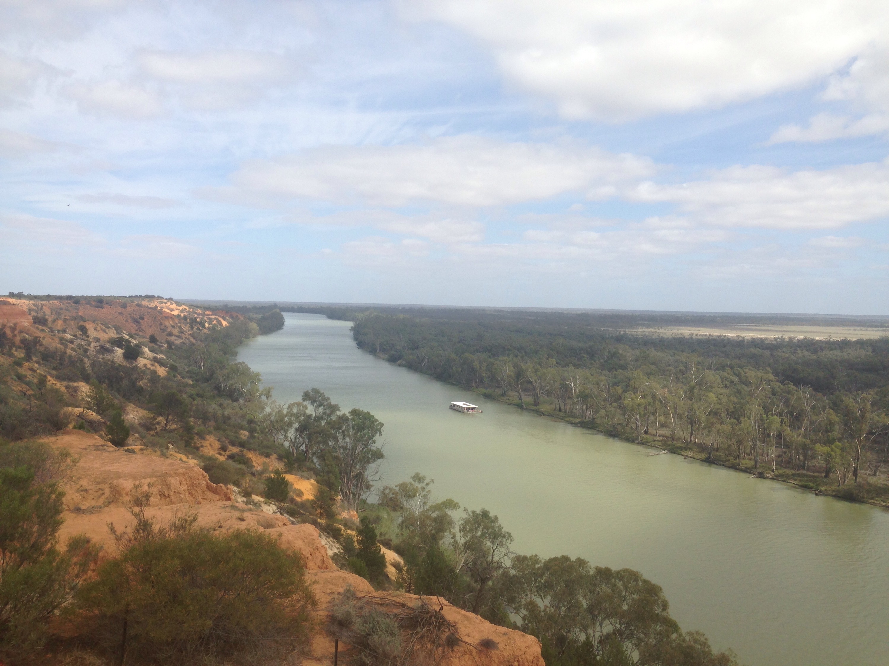 I have thoroughly enjoyed our trip along the Murray. From green dairy farms, to the red dirt with vineyards where ever they could get the water to, to salt bushes everywhere and harsh environment, then back to beautiful pastures on undulating hill sides. And the river itself has slight banks to no banks to cliffs of limestone/granite back to water meeting the banks.