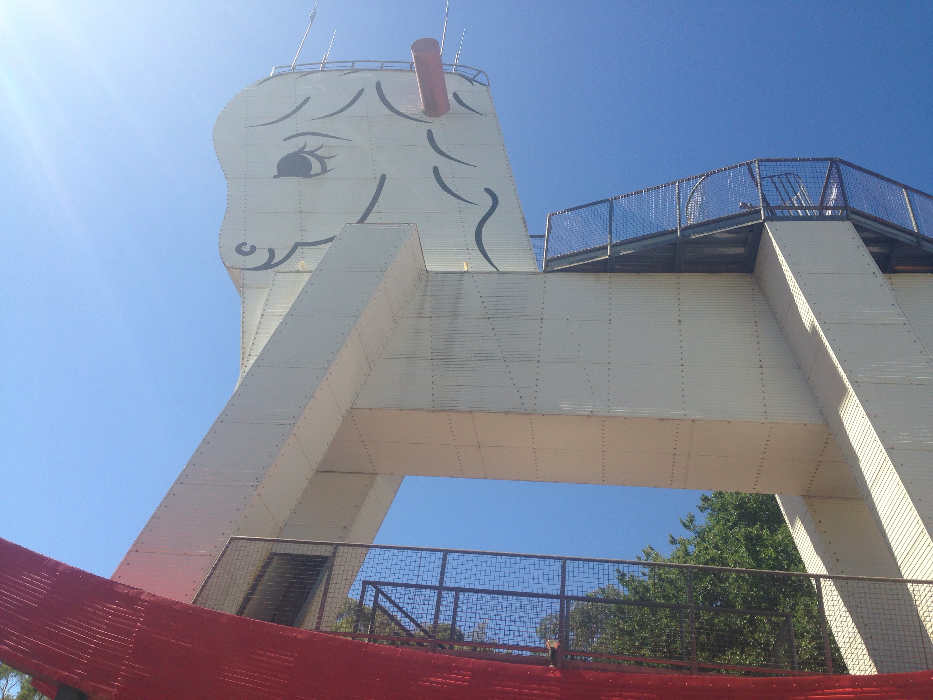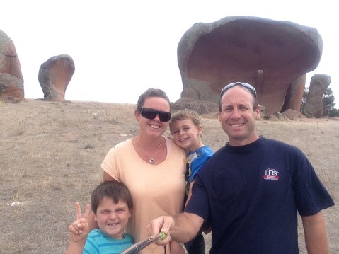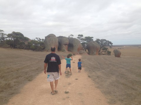 From there we did a big drive to the Big Rocking Horse, which was well and truly worth it. The boys loved it. Matt & Ethan climbed to the top while Nate jumped on my back like a koala and we climbed down.