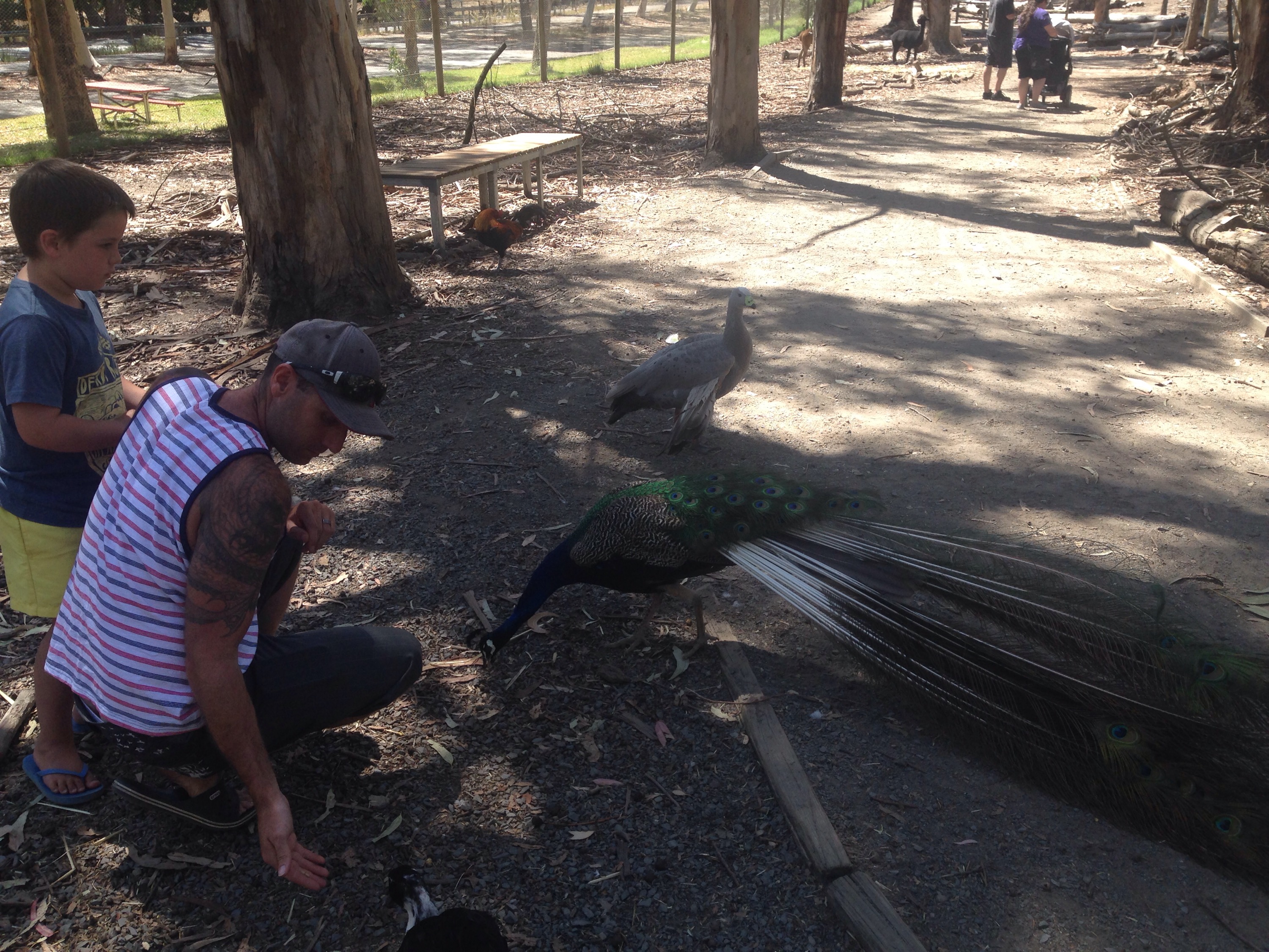 They have a great little animal farm $1 per person to enter and $2 per bag of food. It was similar to Ballarat wildlife in that you walk around amongst the animals but it’s dried and not the enclosure. We saw lots of peacocks which can come and go as they please. Their was a mother peacock and 2 babies. So cute.