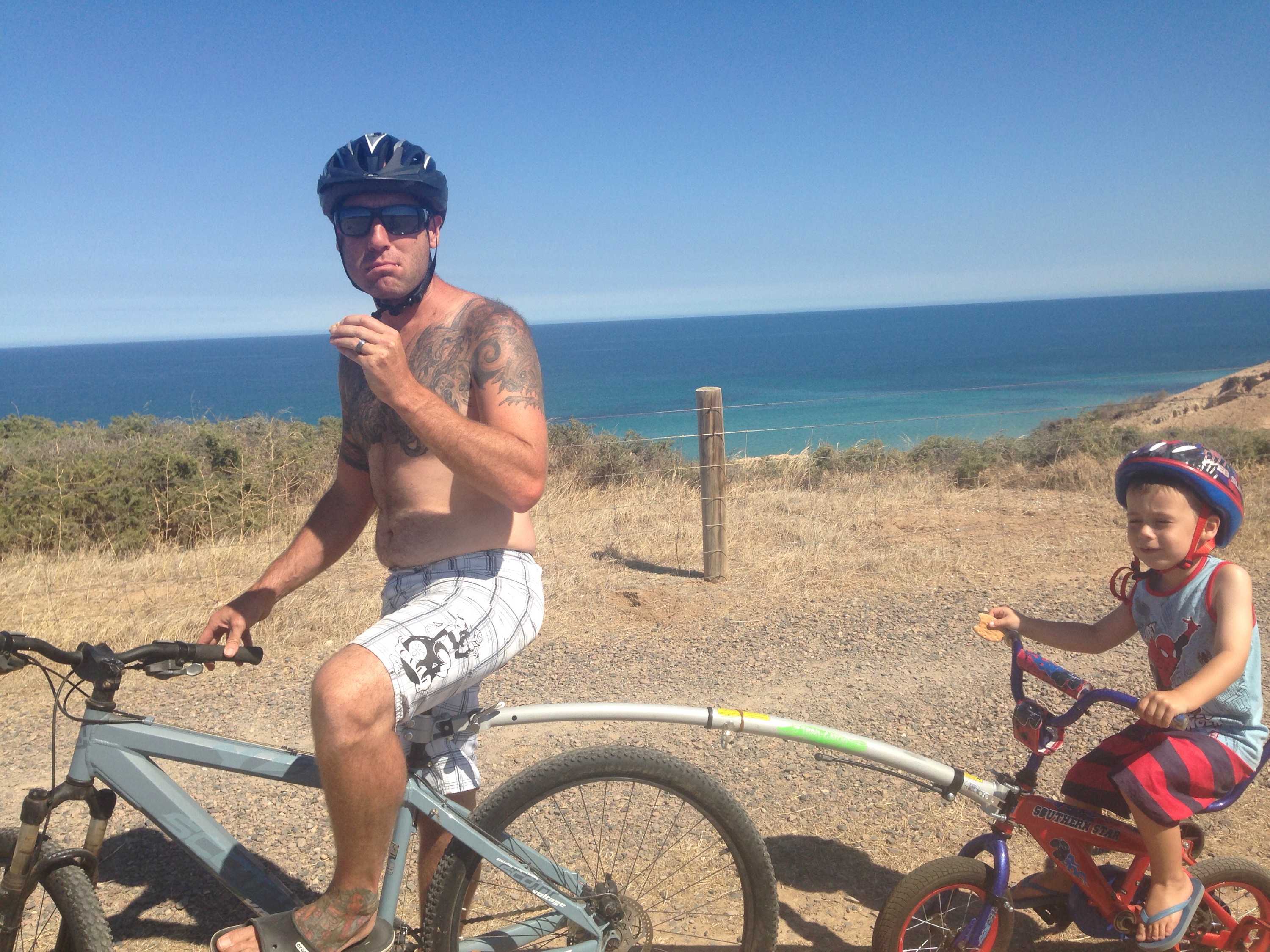 We jumped back on the bikes rode around to the next beach and thought we’d try to get into town along the bike trial we hit a steep decent so we turned around went back to caravan park for a swim.