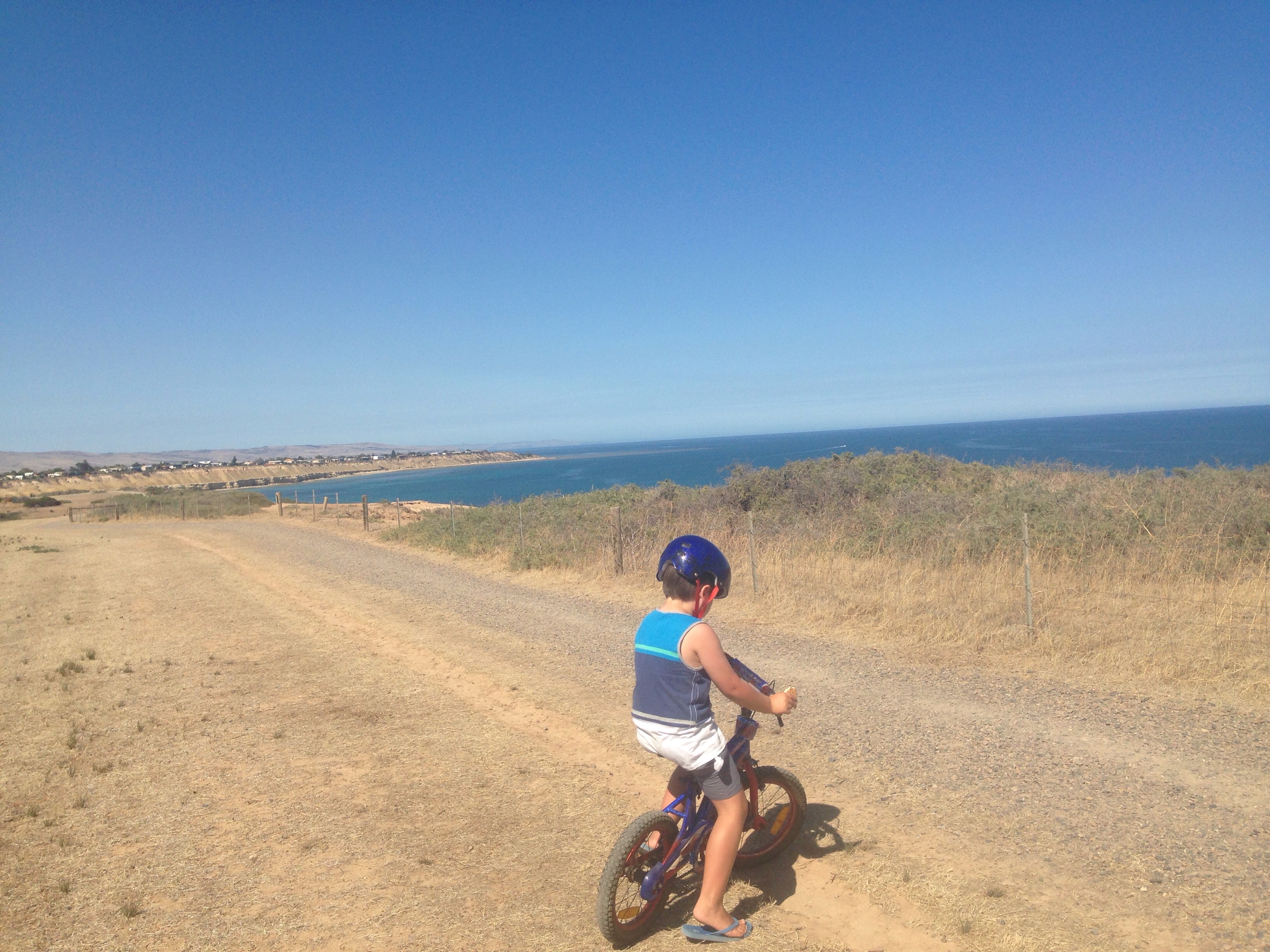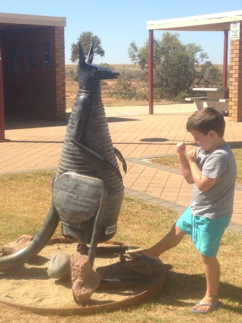 Ethan decided that he wanted to check out the hospital in Waikerie. He came down the hill too fast and lost balance in the gravel and ended up with a big cut in his lip & a slight concussion. It was a horrible 30 mins drive to get him there. I faced him all the way there talking to him and I didn’t get motion sickness. I picked him and raced into the hospital and I don’t remember struggling. What adrenaline does to you.