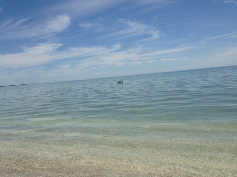 Water was crystal clear. Nice and shallow so it was safe for the boys to swim. Beautiful white sand with cliffs lining the coast.