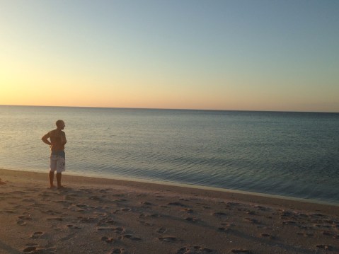 Ethan wanted to watch the sunrise, so he and I went down to the beach the next morning and watched. It was beautiful.