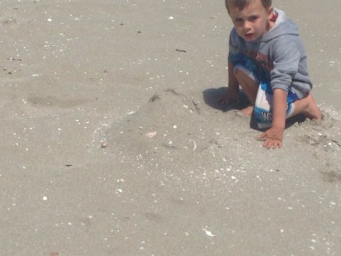 Beach wasn’t nice but covered in seaweed. Still good enough for playing in the sand.
