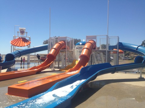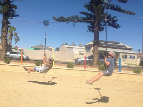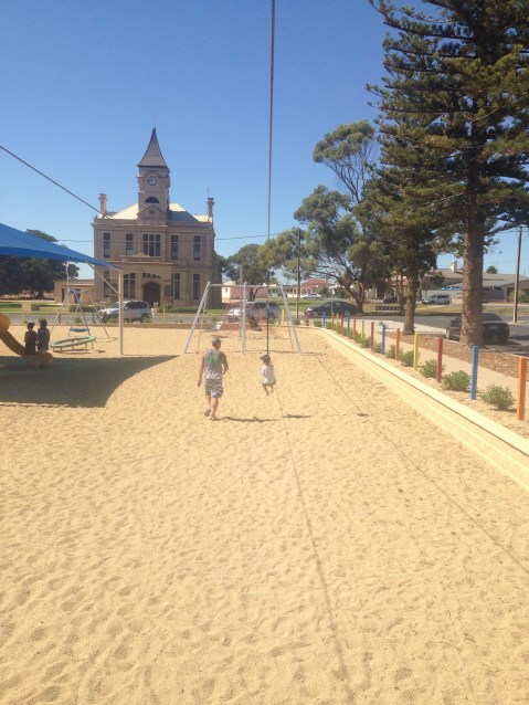 We moved on to a little town just the other side of Kadina called Alford. Another fantastic low cost camp at the old school grounds. With flush toilets, water, clothesline, BBQ and a playground. We made this base and we went and checked out Wallaroo and found a fantastic playround. Then we found out that Moonta Bay had a free splash park so we drove down there to check it out.