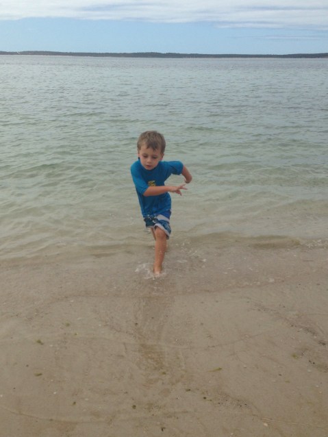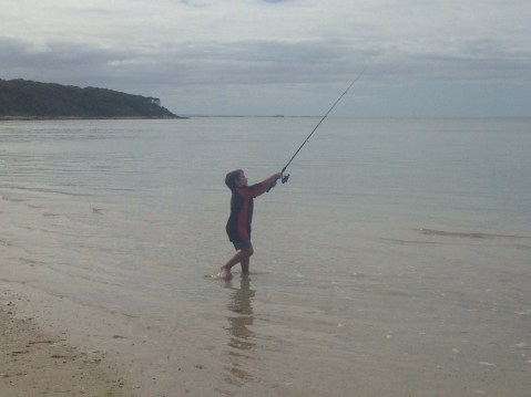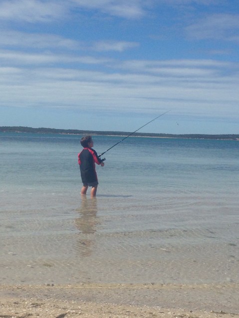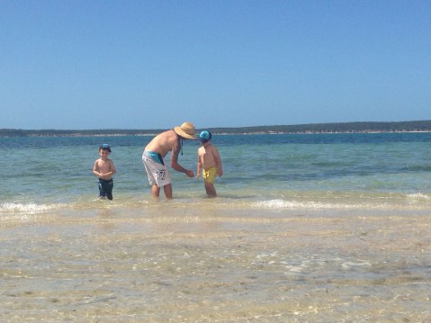 The next 2 days we stayed around camp. Matt tried a bit of fishing with no luck. We all went exploring on the rocks looking for crabs. We saw Dolphins, stingrays, pelicans and baby whiting swimming. 1 of the day’s the water was a bit murky so we didn’t let the boys go in past there knees just incase shark were about.