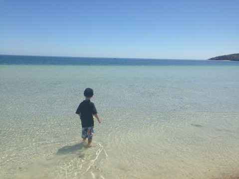 The next day we decided to be lazy and drive the 4kms to Gallipoli Beach. Thank god as we drove along we realised it would have a huge effort for us let alone the boys to make it there. This place (now thinking about it) would be my favourite place. No one else there a beautiful beach. The feeling of the place and its meaning. And it is home to a pod of dolphins that apparently will swim amongst you. Magical.