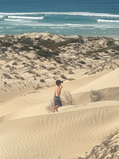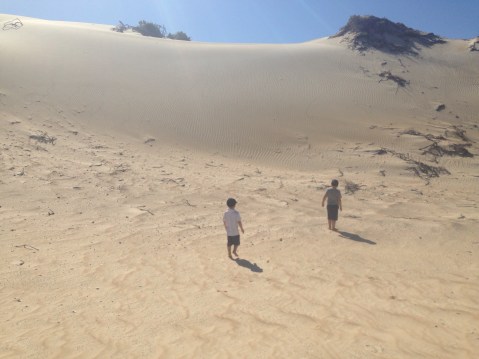 We had been told there was sea lions just around the point. So we took a drive to see if we could find them. But the boys found sand dunes instead which is much more interesting and fun.
