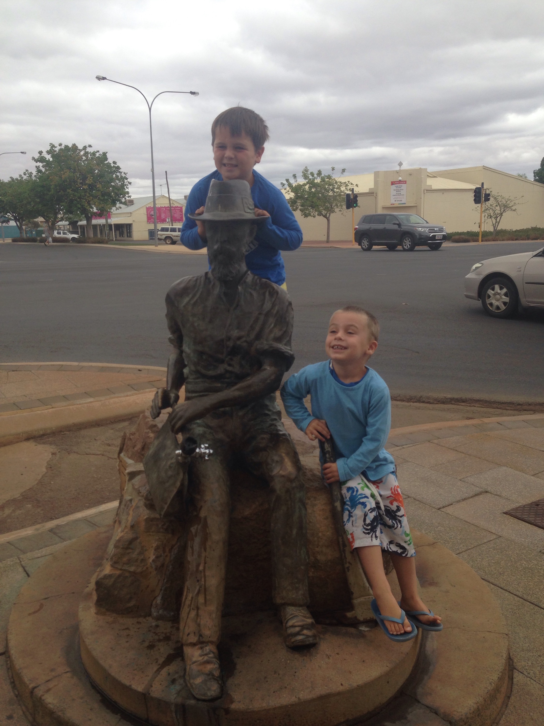 The following morning we went back into Ardrossan and got supplies. This little town has the best customer service I have ever seen. Mitre 10 the guy gave Matt some fishing advice and continued until he had finished even though he had other customers waiting. The Foodland deli lady gave the boys some meat to eat while we walked around. Then Matt took them to the grog shop while I went through the checkout and the guy in there gave the boys a hat each to stop them running a muck in the shop.
