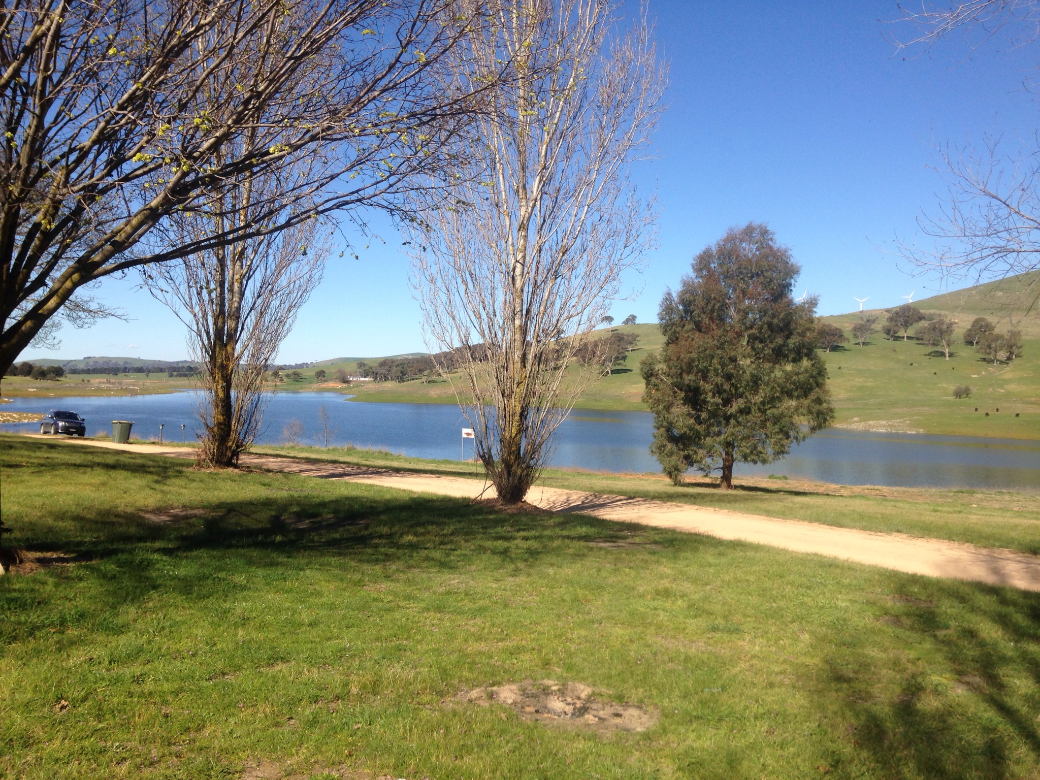 After the thrill of that we thought we’d head off to our next camp ground. Carcoar dam. What a beautiful spot. Toilets, cold showers and great views. There are about 20 other’s here with us. It’s a great spot. Looking over the dam there are some wind turbines. So we have been up and read some information on them. They are amazing being able turning position and blade’s position to get the most out of the wind.