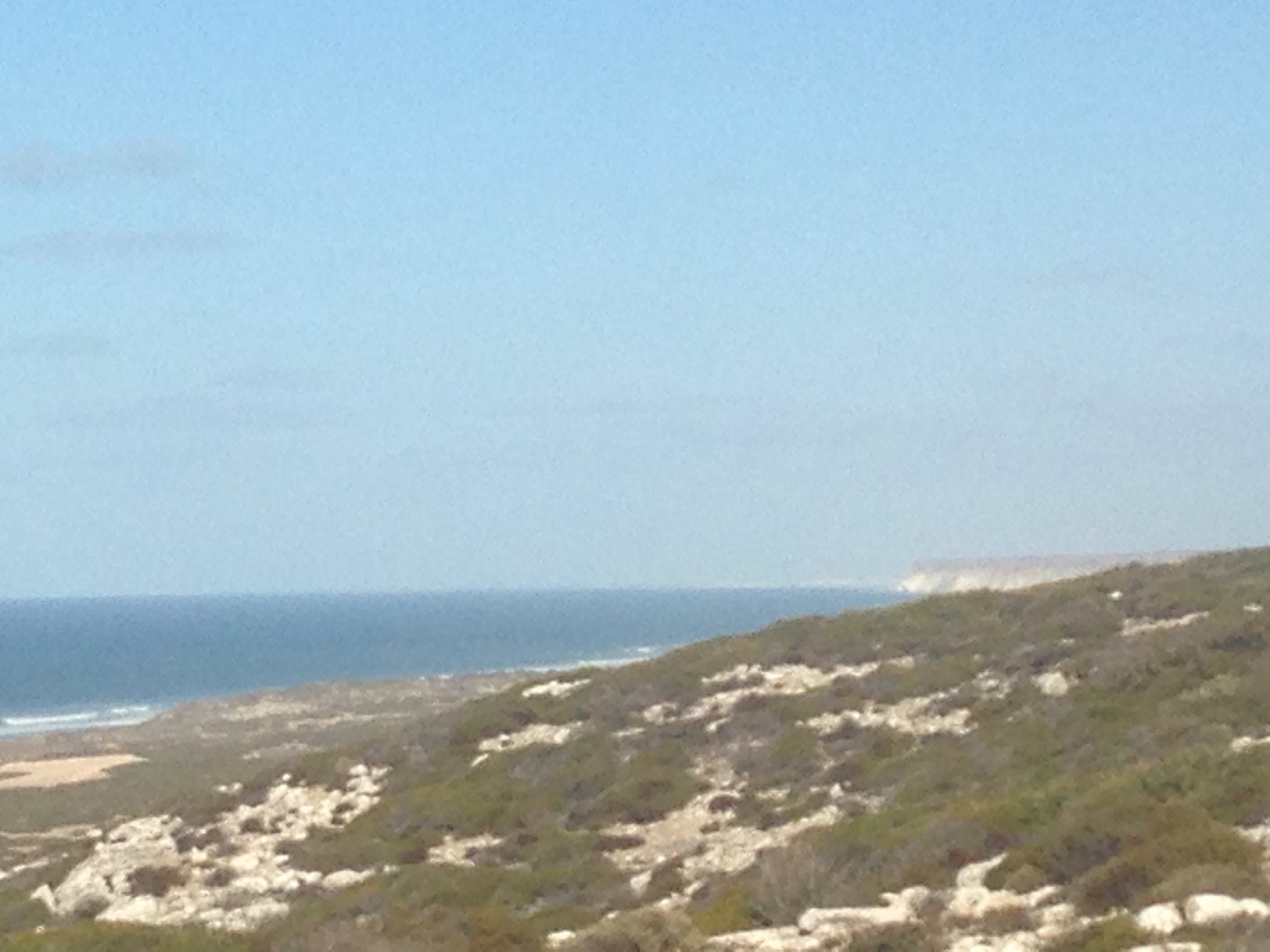 We moved on. Not far up the road we came to The Head of the Bight. To my surprise there were sand dunes to the East and to the West were the most beautiful cliffs. And out in front nothing, not one thing for hundreds of miles.