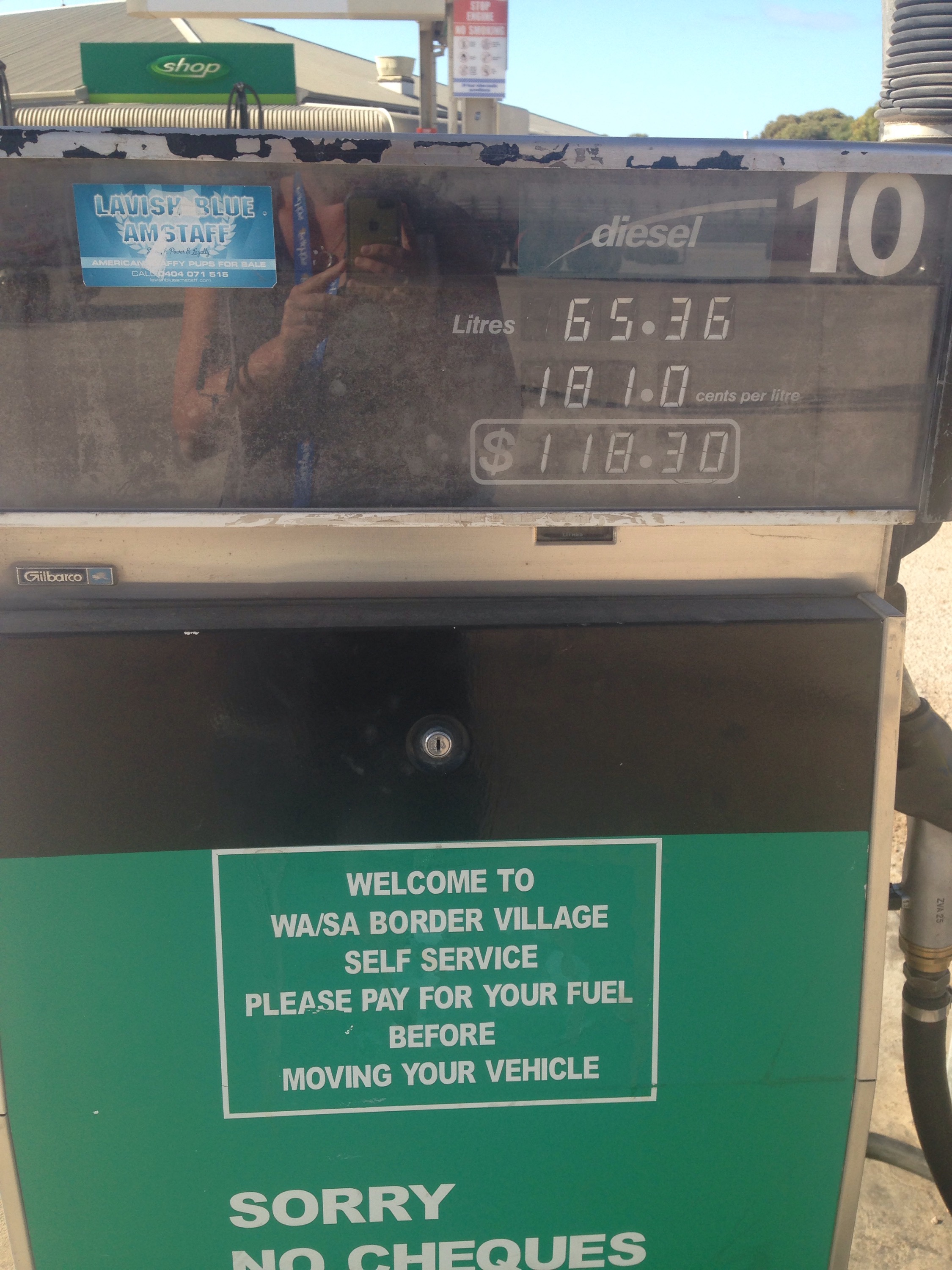 From here it wasn’t long til we came to Border Village. Apparently the dearest petrol coming across so I checked out the price. And yep it was (We didn’t fuel up here).