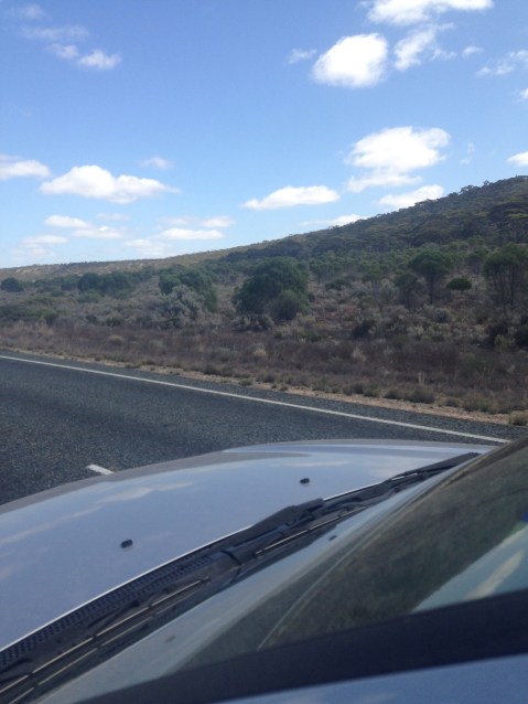 We put more fuel in at Madura ($1.73), saw the people from Shepparton again. We thought that this would be be our camp for the night but it was way too early to pull over so we kept driving. At Madura we drove back up on top of the cliffs/ridge. It was pretty cool at the start as you could still see the land down below. You couldn’t really see the cliffs. Then we got further away and it was just plains. It was up here that we came across the most road kill every couple of hundred meters.