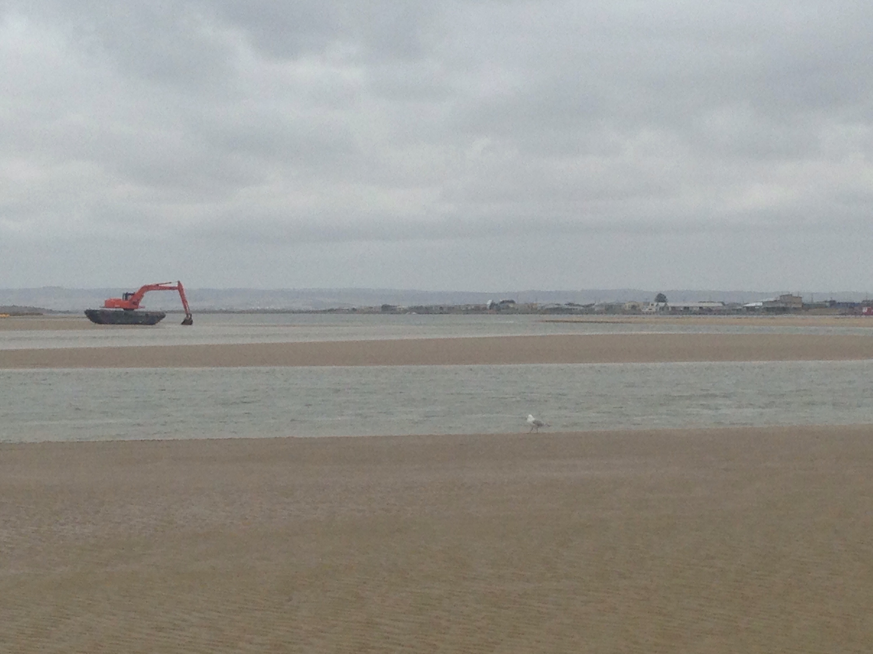 We got to the mouth at low tide. Looking out Matt & I thought yeh we could walk across to the mouth. But once we got to the channel, that had been dredged, there was no way we could. We tried to walk until our map on our phones said we were in the centre of the mouth. But the tide turned and made it a bit hard.