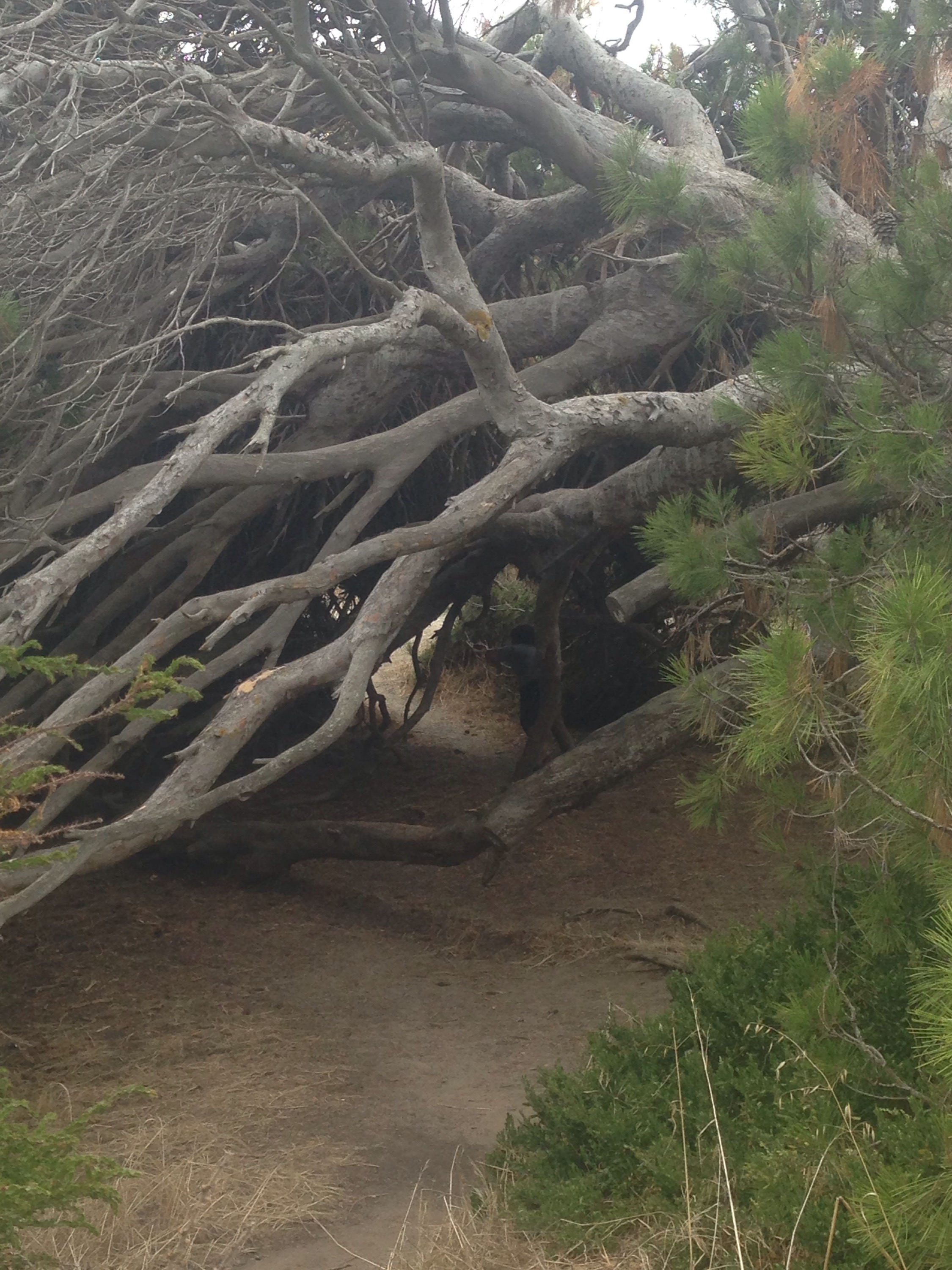 Matt told the boys to walk through the trees roots then told them that a witch lived there poor Natey freaked out.
