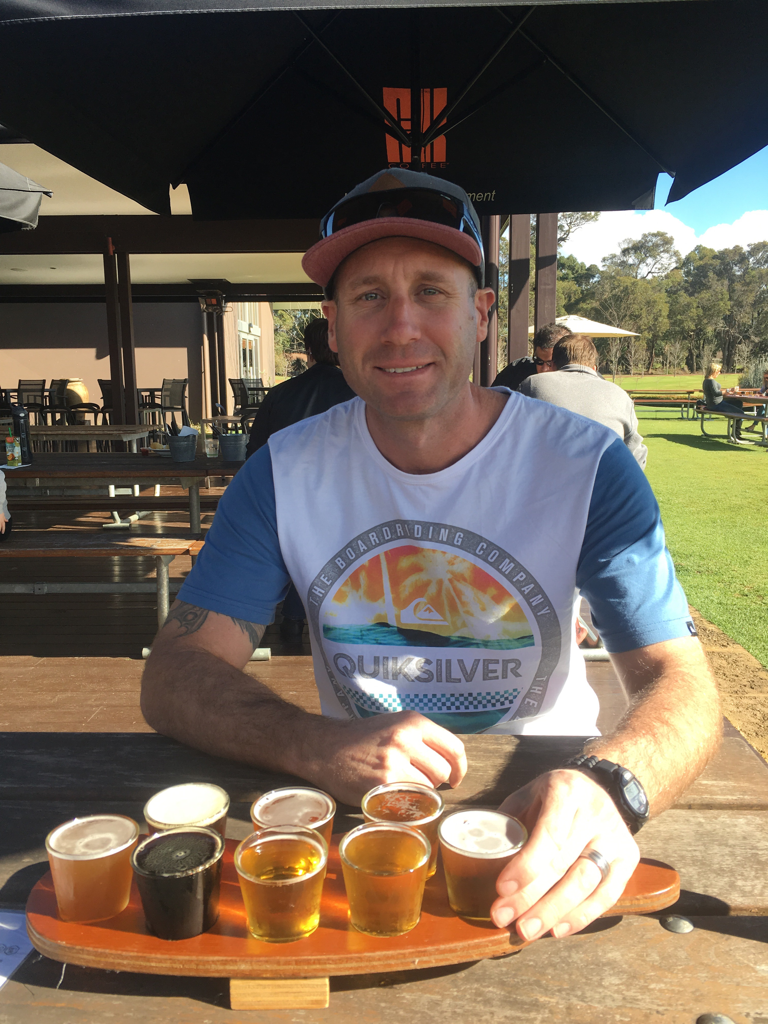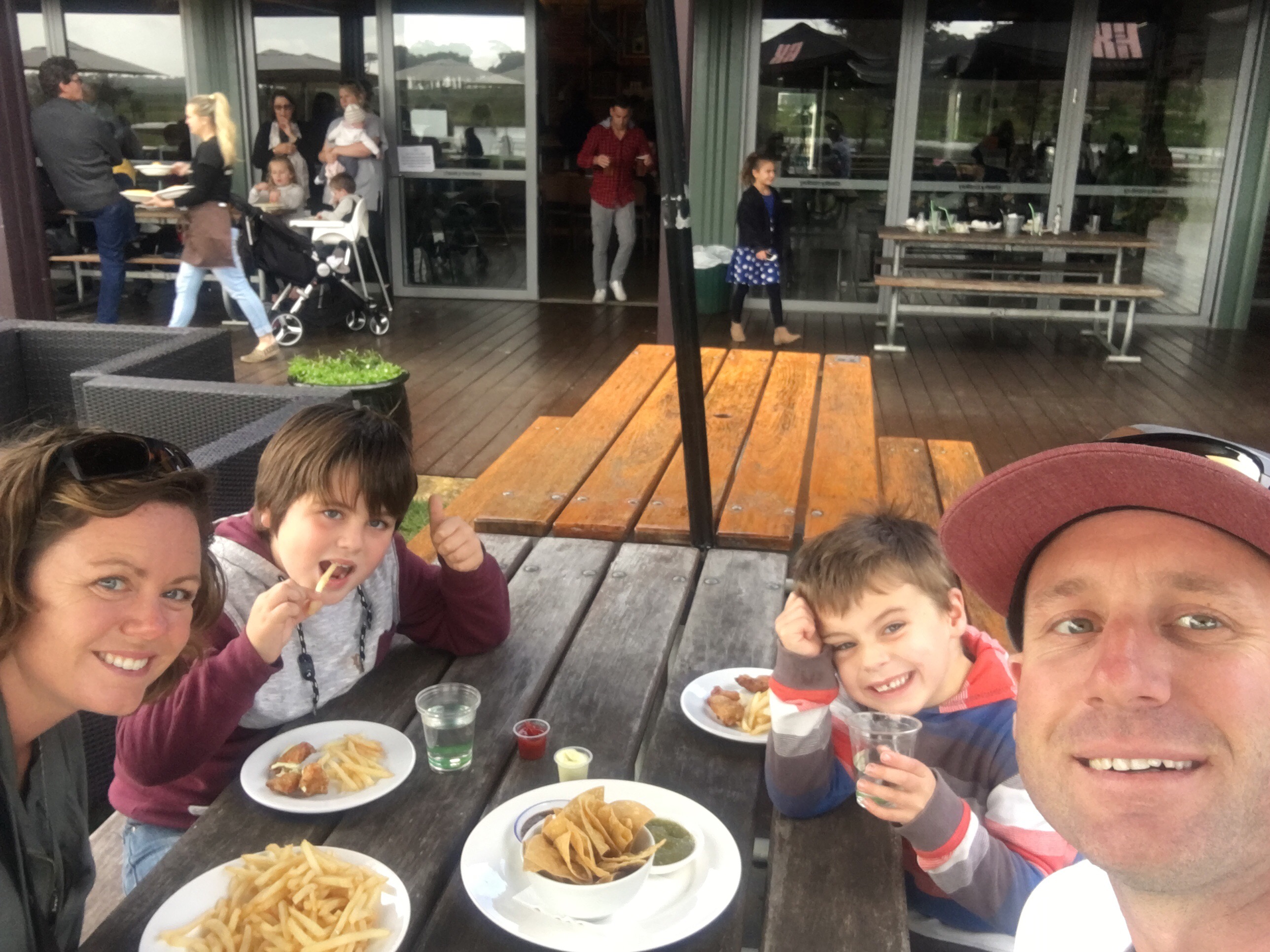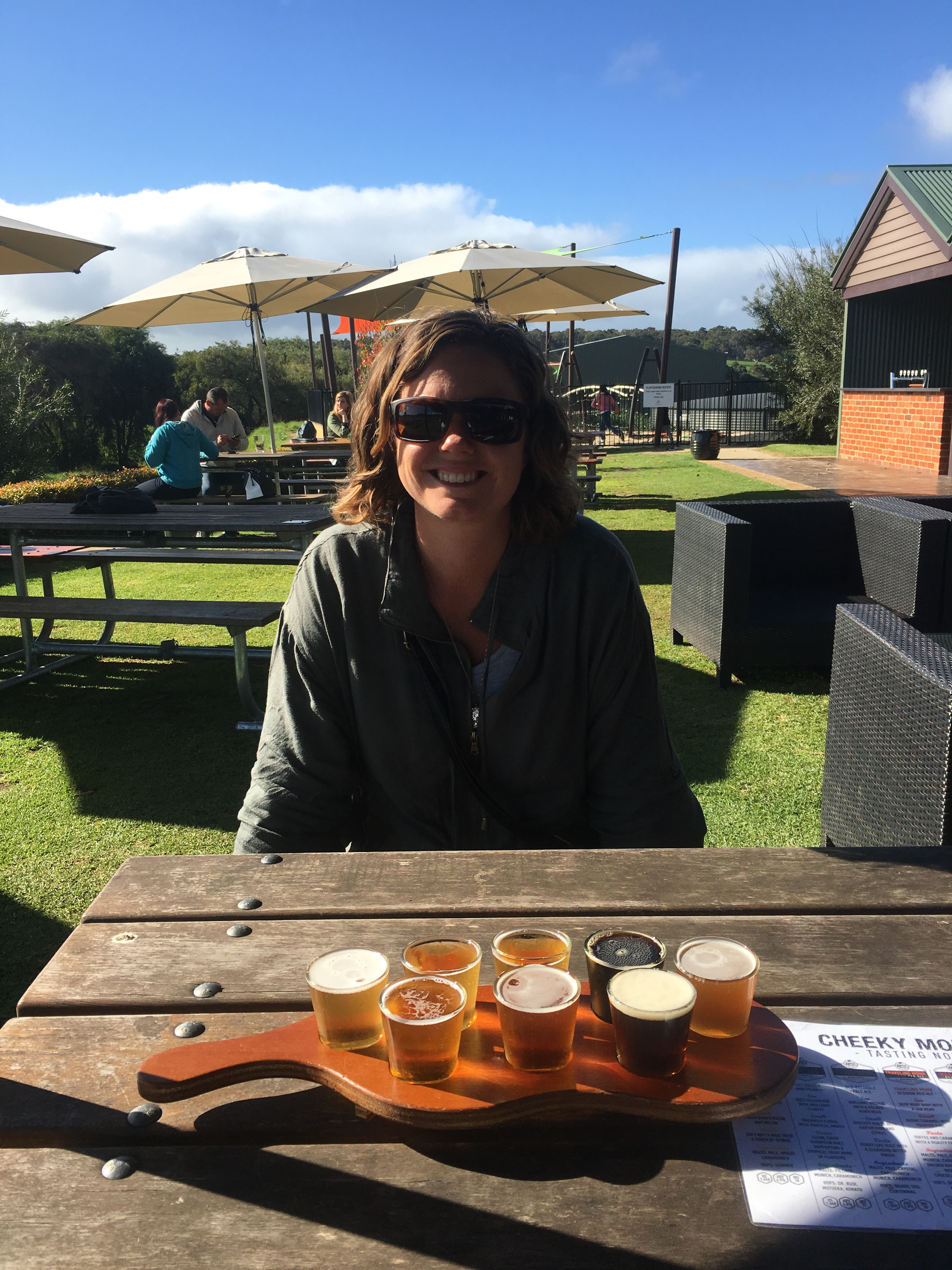 We then called in to do some olive tastings at Olio Bello. To our amazement the boys loved it. Well Ethan loved the jams, sauces, chutneys. Nate loved the free sample bread and biscuits, nothing on them just bread and biscuits. After making a few Purchases we continued on our tour to Cheeky Monkeys Brew and cider house. We grab a seat near the playground then purchased a sample paddle to share.
